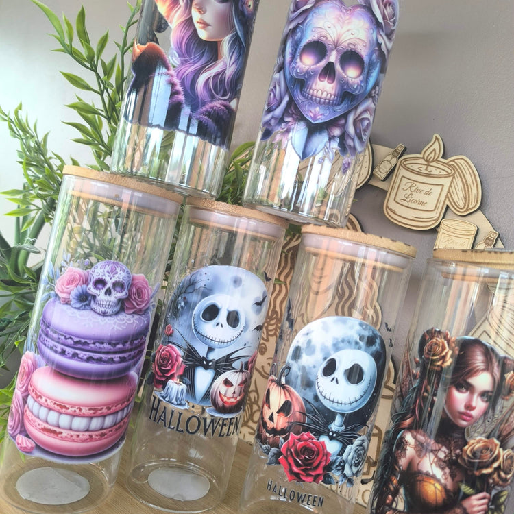 Verre Paille et bambou gravé "Halloween"