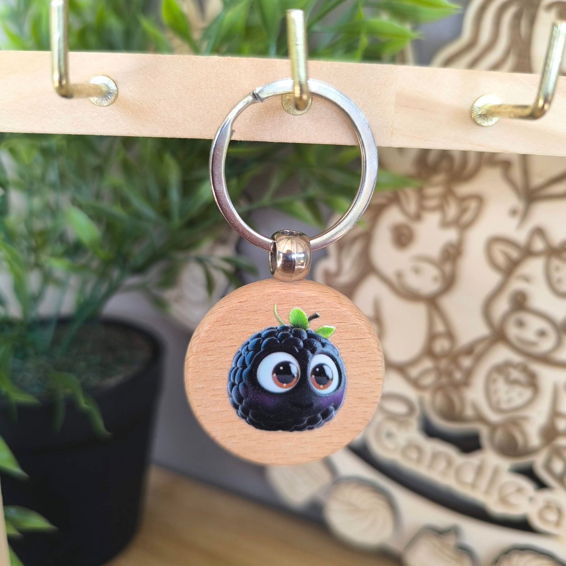 đ Porte-ClĂ© Rond en Bois â Fruits Kawaii & Phrase Rigolote