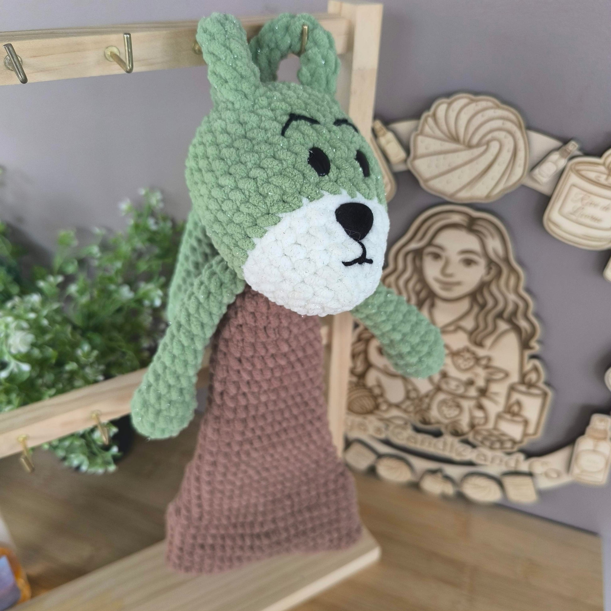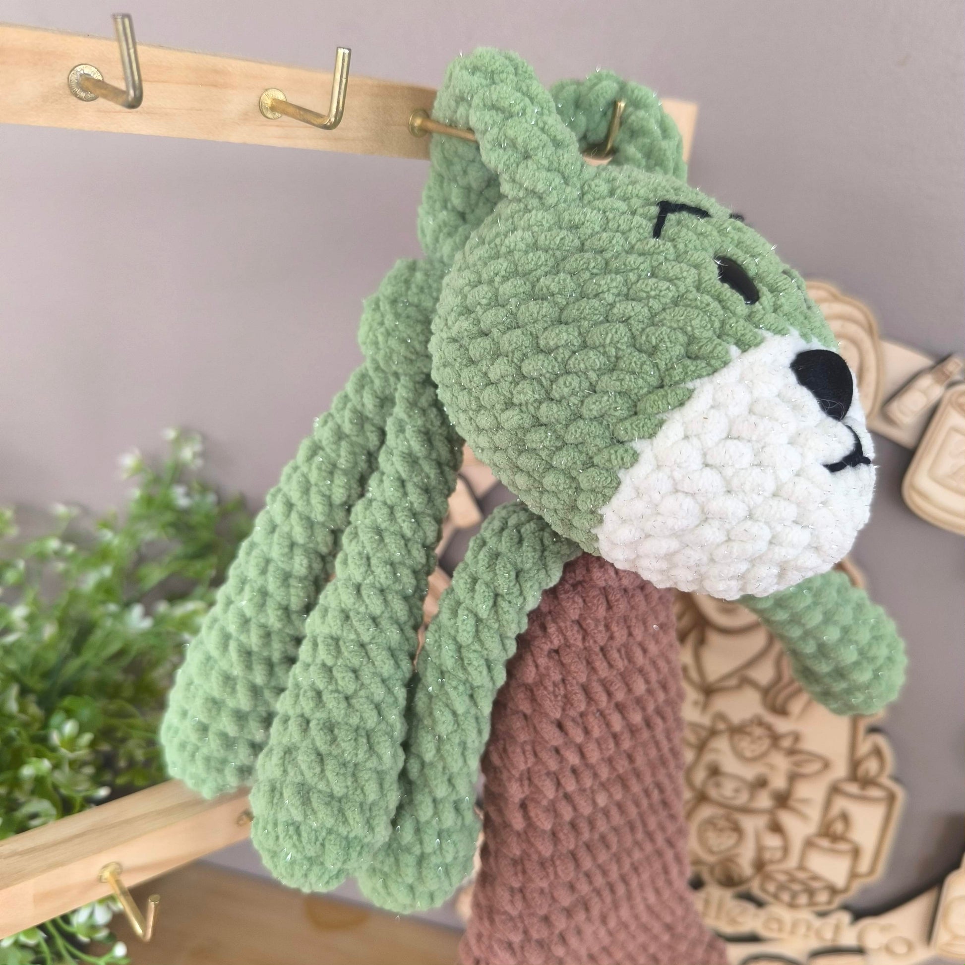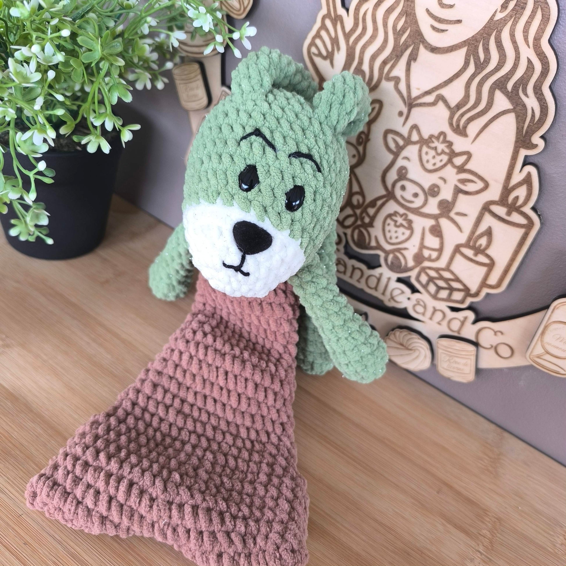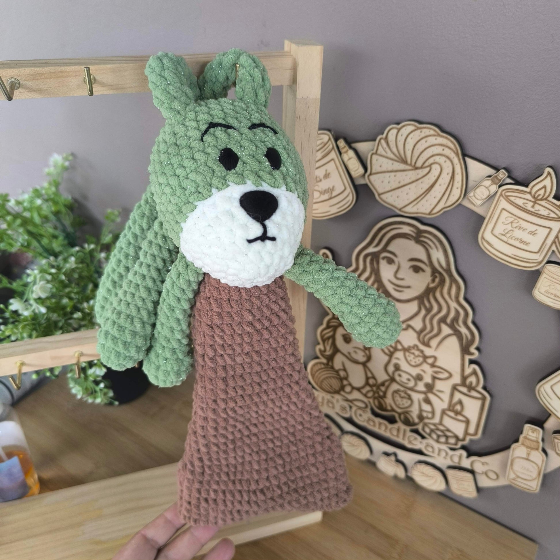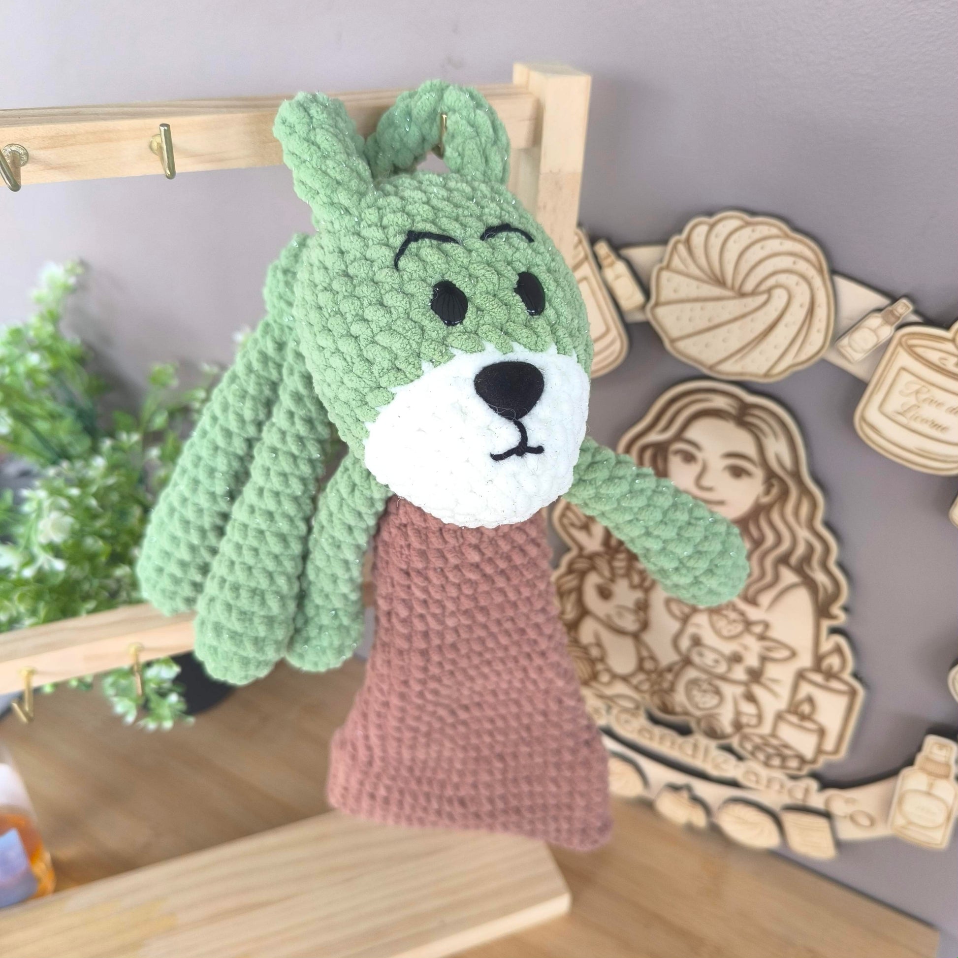 La peluche Peduk arrive bientôt ! Réalisée entièrement à la main en laine chenille douce, avec des touches de laine chenille pailletée pour les parties vertes et blanches ✨.